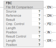 .DN | BOOL | The done bit is set when the FBC instruction compares the last bit in the Source and Reference arrays. |