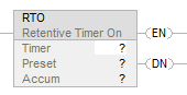 5580, and ControlLogix 5590 controllers.The RTO instruction is a retentive timer that accumulates time when the instruction is enabled.