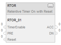 Set the Reset input parameter to reset the instruction. If TimerEnable is set when Reset is set, the RTOR instruction begins timing again when Reset is cleared.
