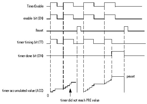 DN | BOOL | Timing done output. Indicates when accumulated time is greater than or equal to preset. |