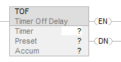 .ACC | DINT | The accumulated value specifies the number of milliseconds that have elapsed since the TOF instruction was enabled. |
