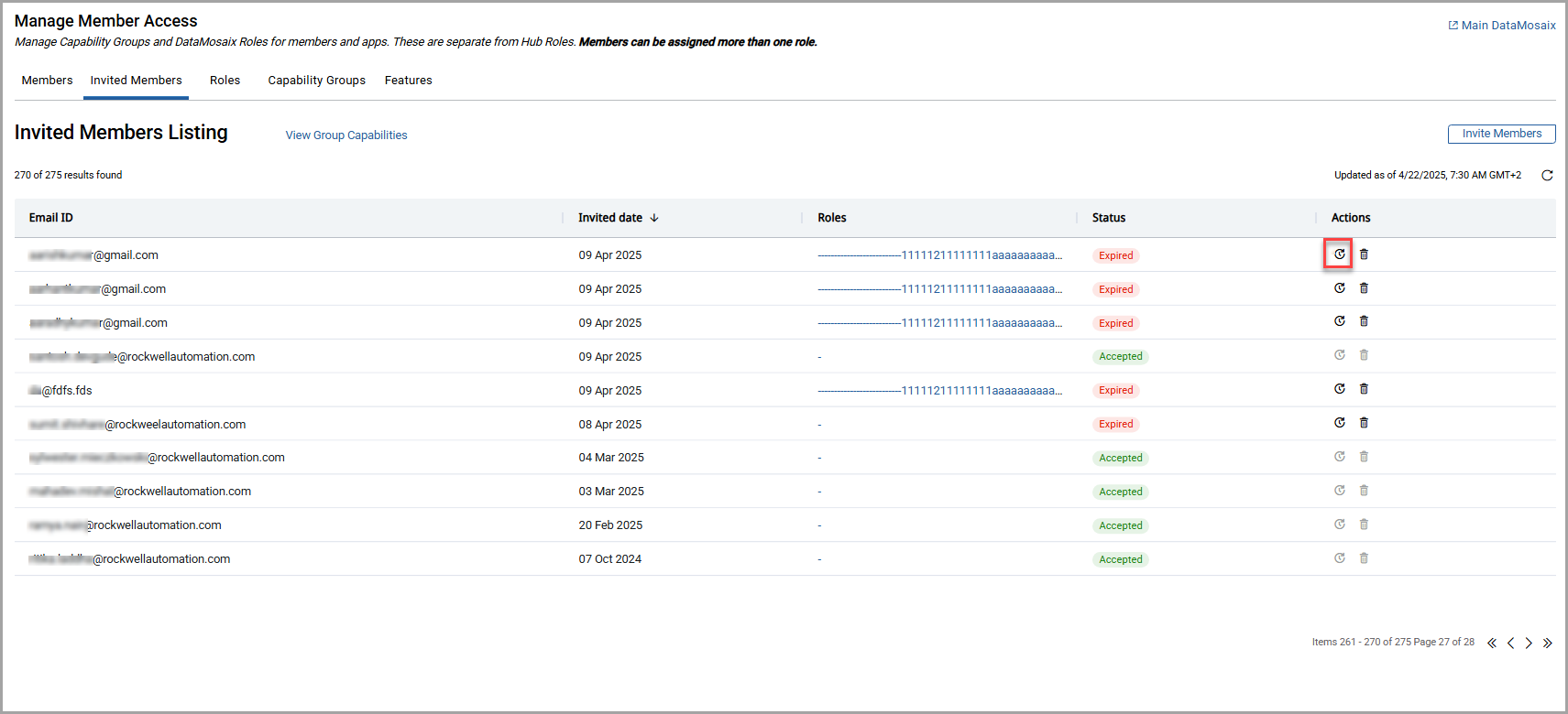] icon in the Actionscolumn, against the email address for which you want to resend the invitation.Invited Members Listing