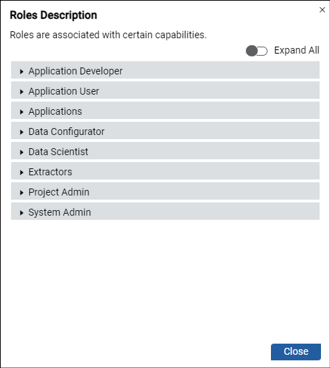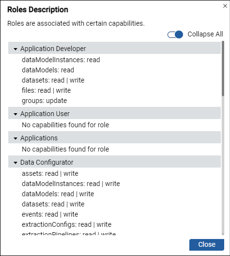 toggle button to view the list of all role capabilities.View Role Capabilities