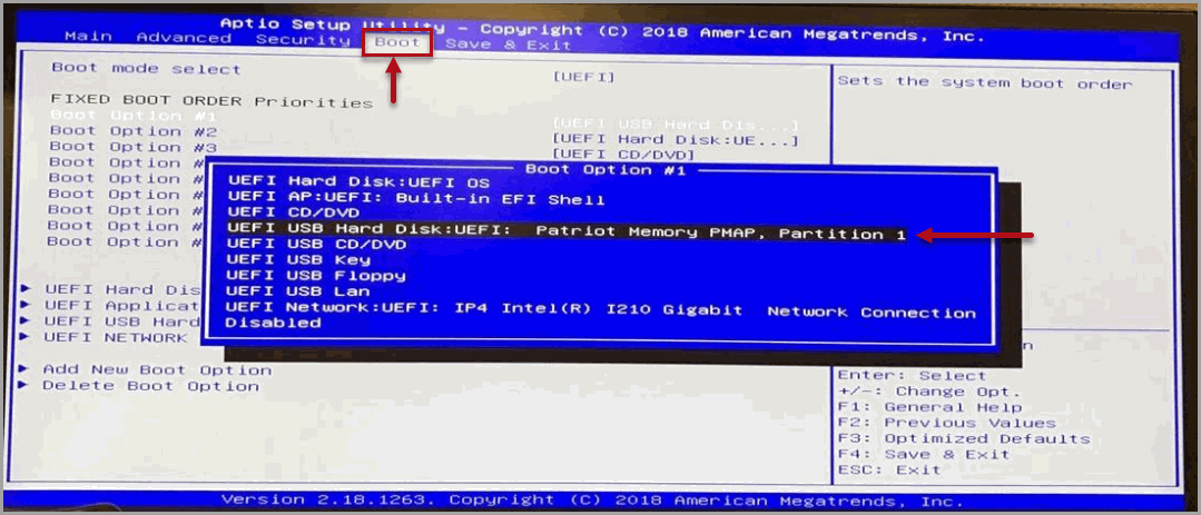 - Power ON the Edge Node manually and invoke the BIOS settings again. Change the boot option to the default bootable disk.