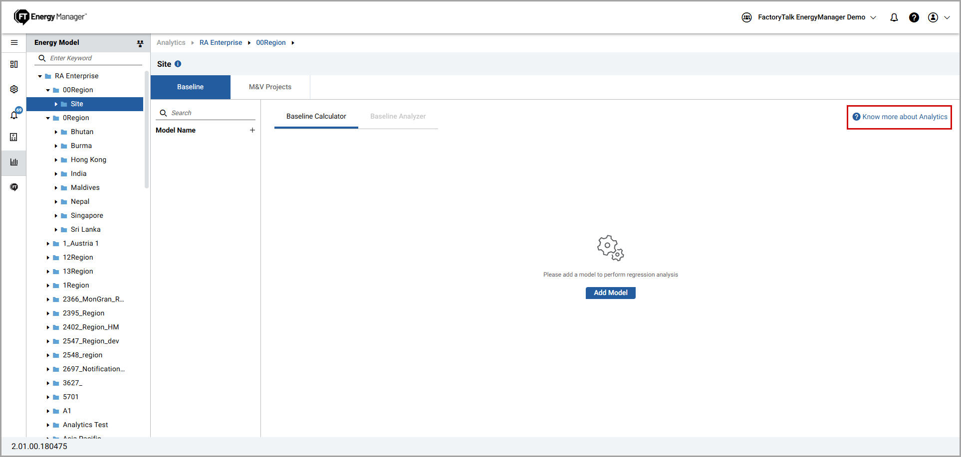 - TheM&V Projectstab allows the user to create Measurement & Verification Projects of a model under the site level.