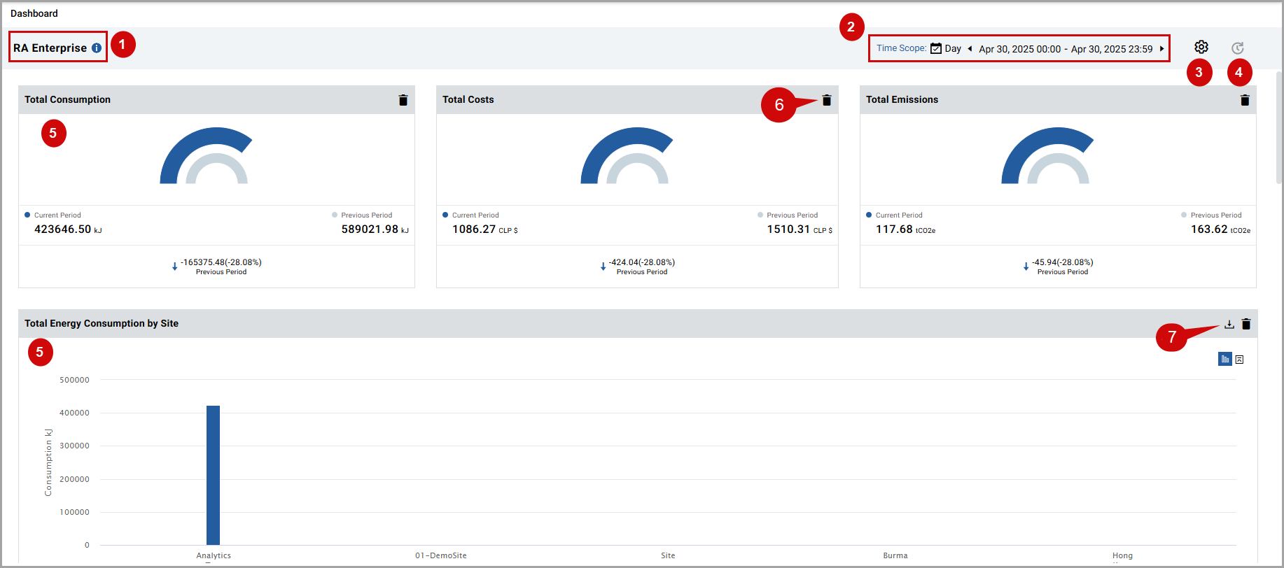These dashboard features allow users to manage the charts/widgets and view the details at a given data point.