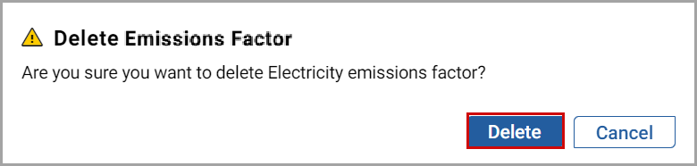] icon. - In theDelete Emissions Factordialog box, clickDelete.Delete Emission Factor