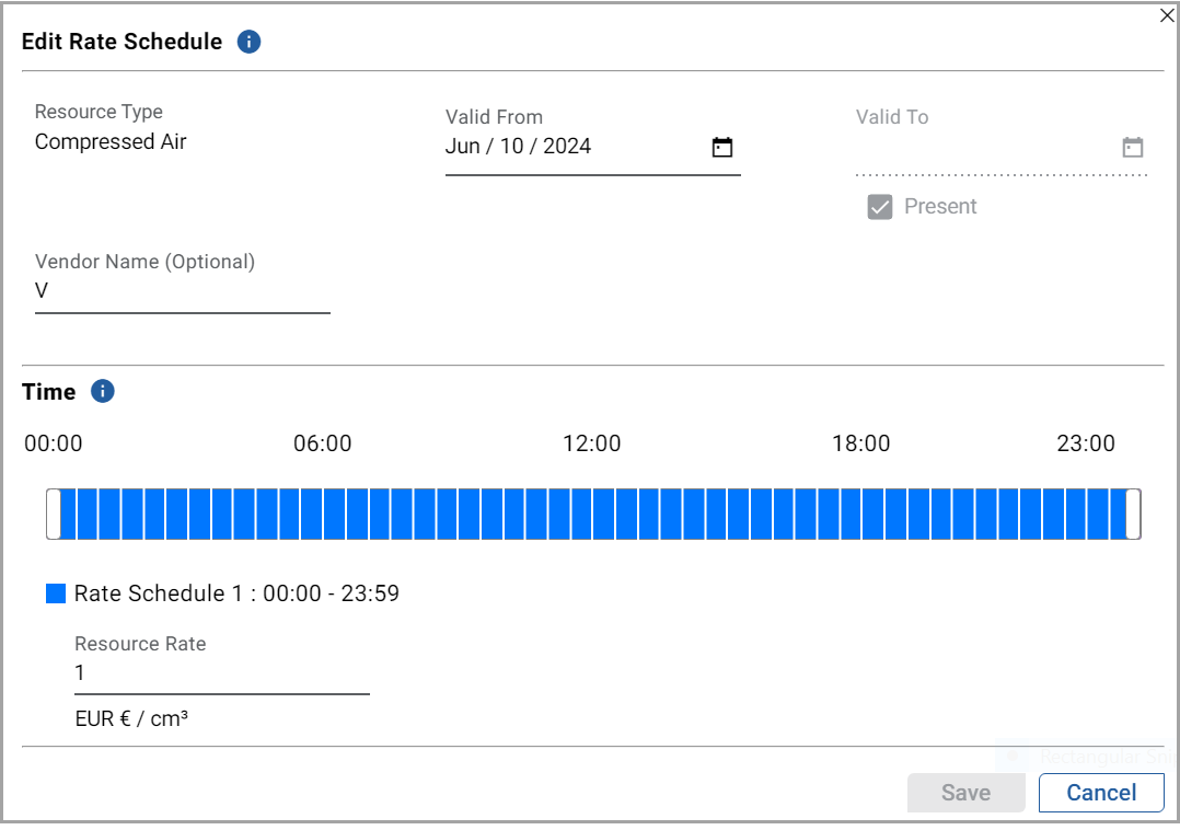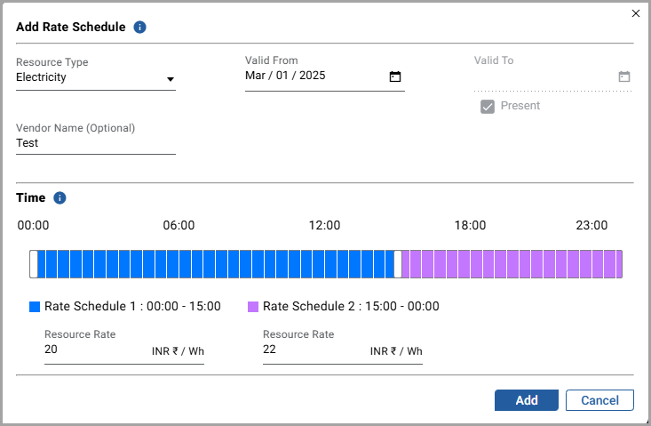 - Time: Select a rate schedule period by using the angular-slider.