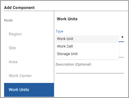 - UnderNodefrom the left pane, selectWork Units.Add Component - Work Unit Dialog