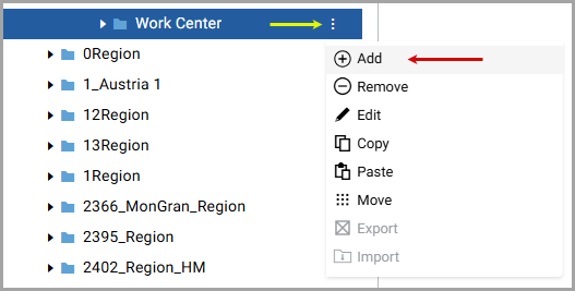 - SelectAreaorWork Centerfrom the hierarchy list.