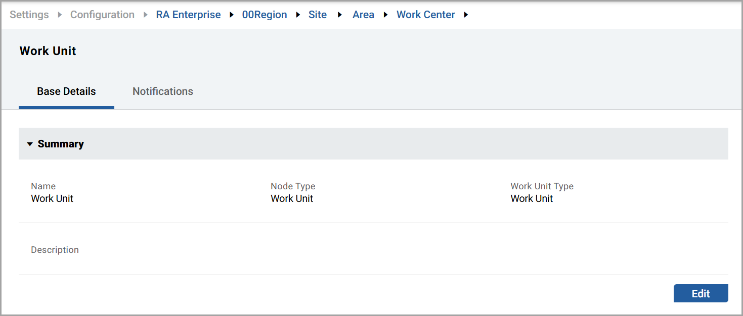 - ClickAdd.The "<Work Units Name> added under the <Work Center Name> successfully" message is displayed.