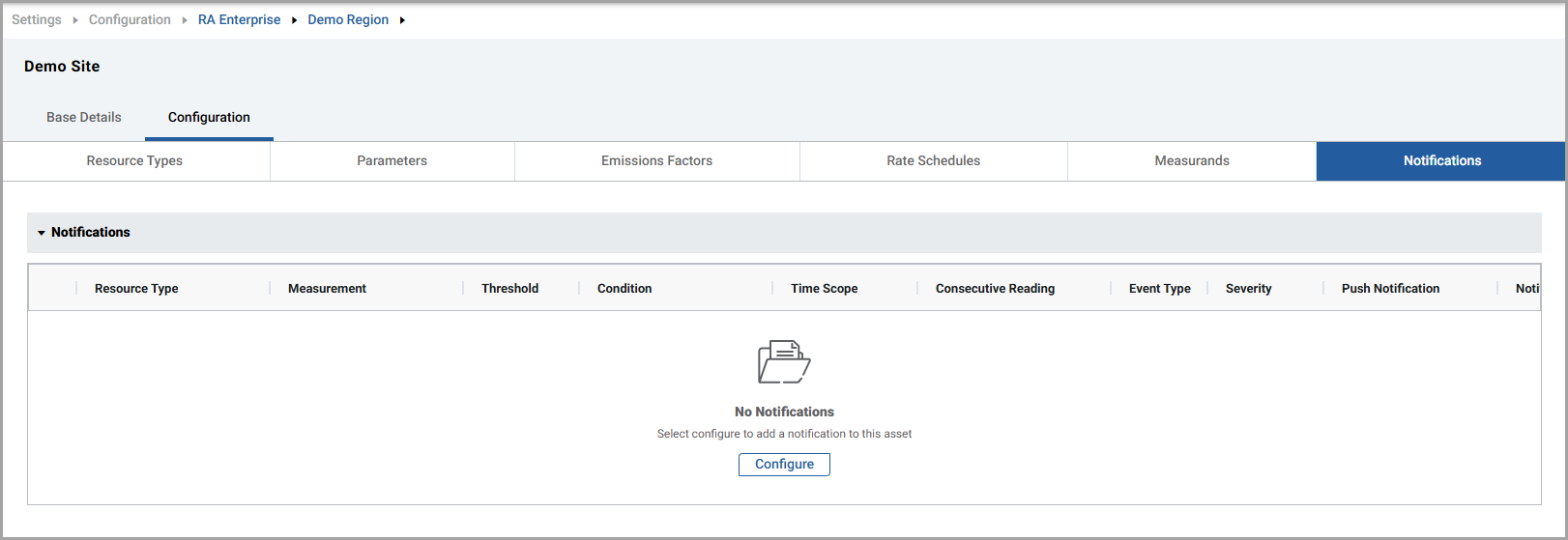 - ClickConfigurefrom the Notification table.Configure Notifications