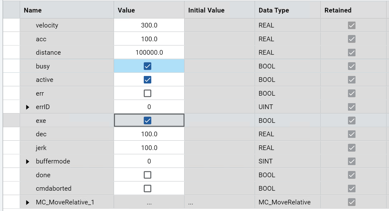 The MC_MoveRelative instruction commands a controlled motion of a specified distance relative to the actual position at the time of the execution.