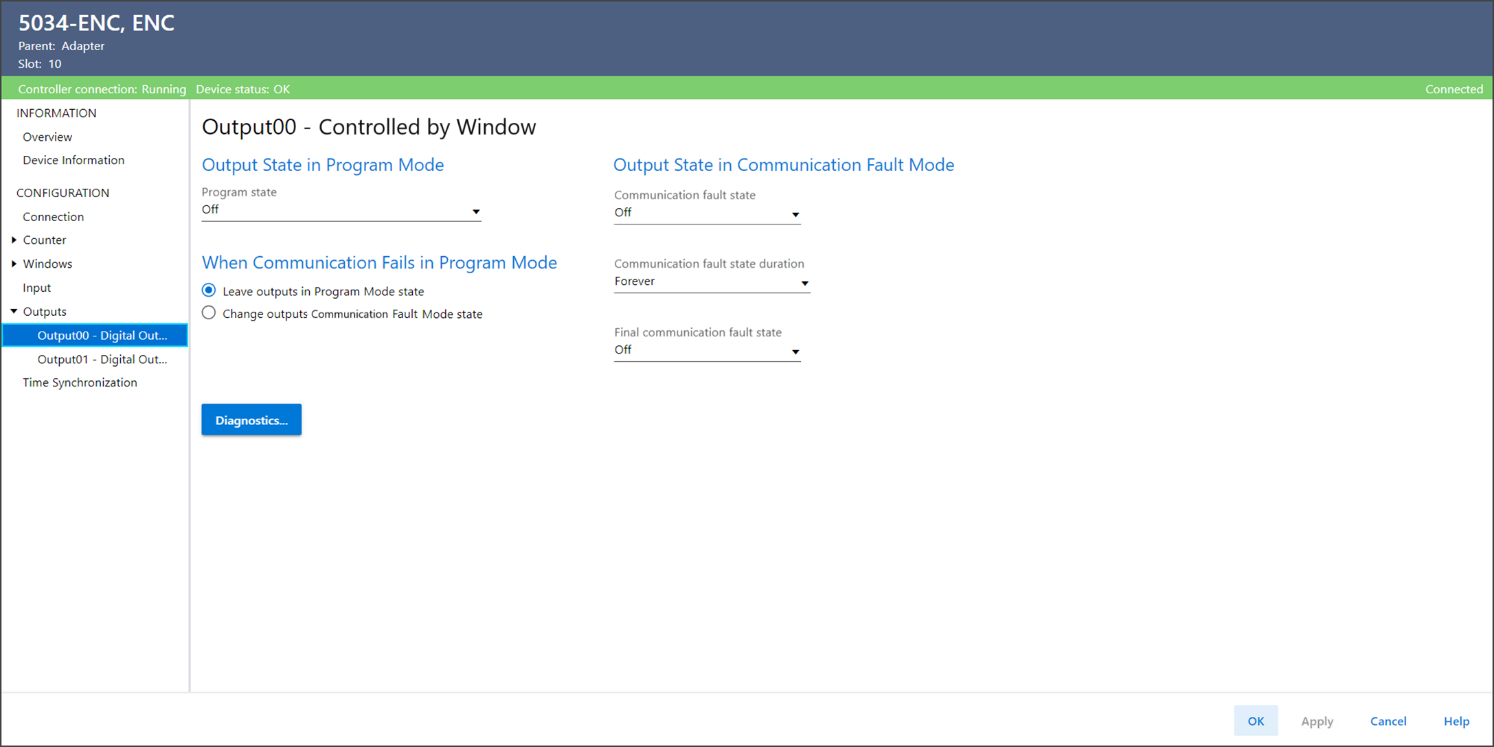 Output State in Communication Fault Mode Communication Fault State Duration | Determines the length of time the Communication Fault Mode is