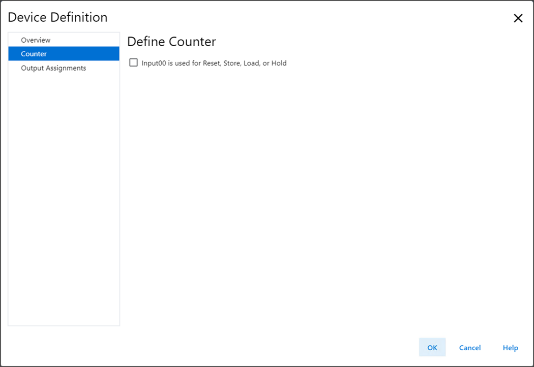 Input00 is used for Reset, Store, Load, or Hold | Determines whether to use Input00 to trigger counter