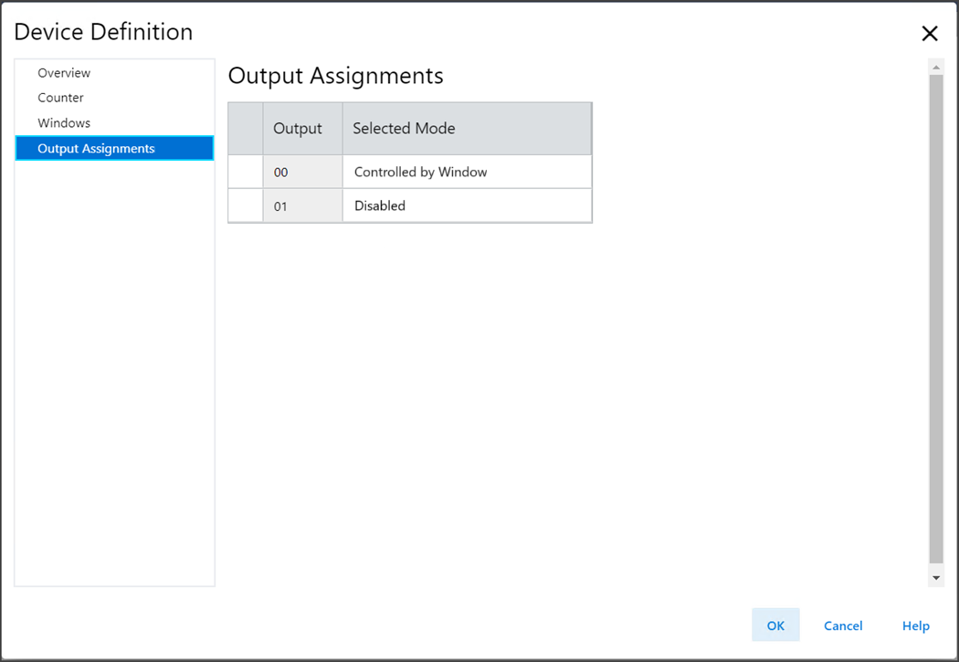 This section shows definitions for specifc configurations chosen in the Device Definition
