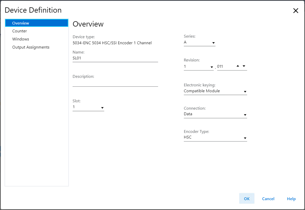 Use Define Counter to define the counter parameters when the Encoder Type is