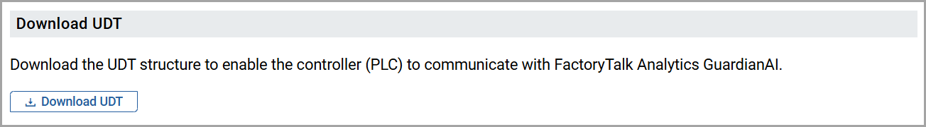 A custom UDT structure is available to enable the controller (PLC) to communicate with