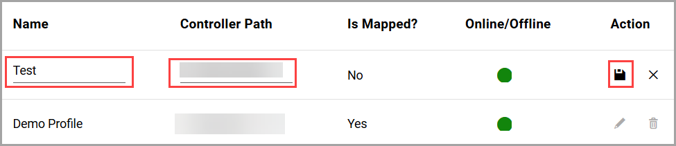 - Click the save icon. The "Controller Profile is successfully updated!!" message is displayed.Save