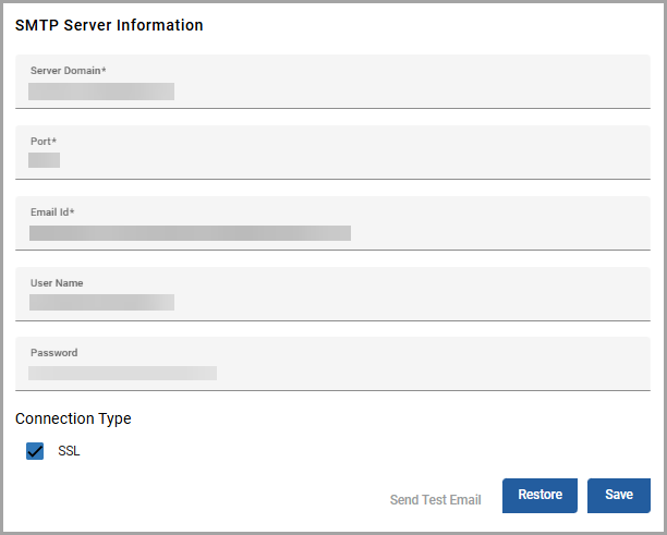 - Connection Type: Enable SSL encryption as required when communicating between FactoryTalk Analytics GuardianAI and the SMTP server.