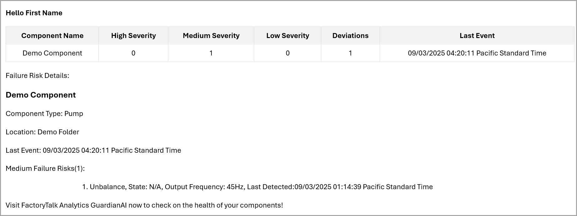 unresolved failure risks for all components monitored by FactoryTalk Analytics GuardianAI.