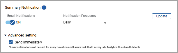 FactoryTalk Analytics GuardianAI sends Summary notifications at a configured frequency,