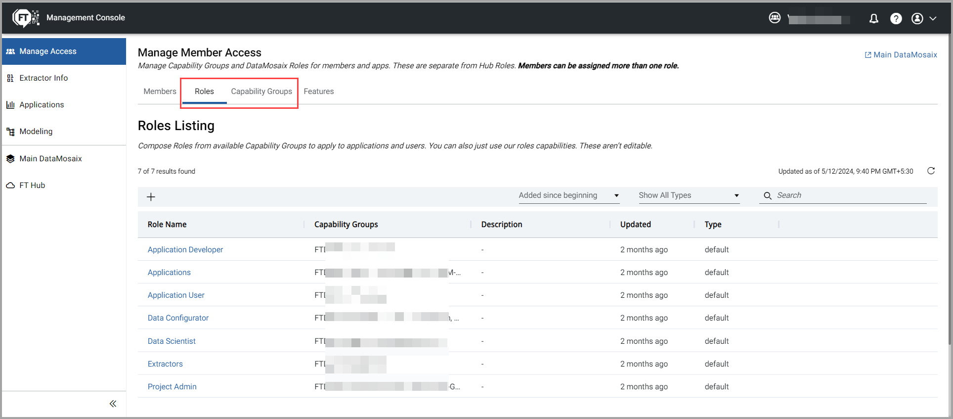 - RoleConceptually, a role is the role a user plays in an organization. An engineer, an IT administrator, a manager. In the case ofFactoryTalk DataMosaix SaaS, it is a set of capabilities as defined by capability groups. You assign Groups of capabilities to roles. A user will have one or more roles.