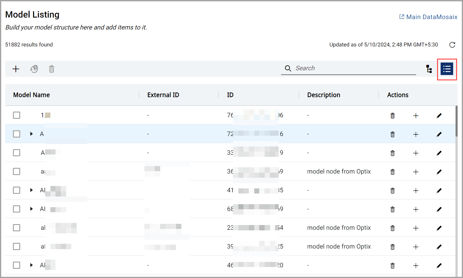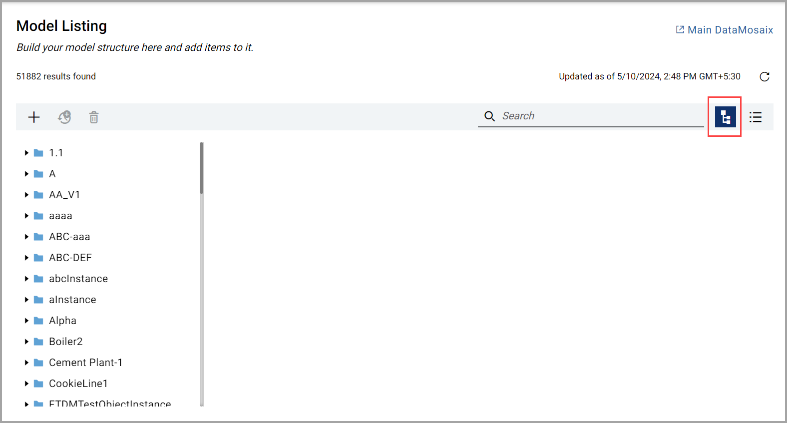 You can view the assets' structure using the Tree view and List View. You can toggle between the two views by clicking the