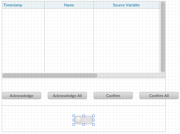 - InWidgets, drag theAlarm gridwidget intoPage2 (type). TheAlarmGrid1object appears inPage2 (type).