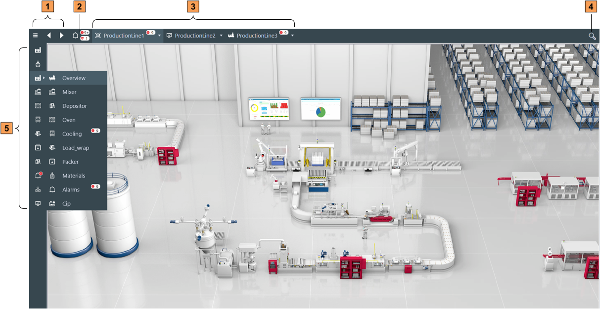 ![]() | Item on the navigation menu configured as shown icon only at design time. Alarms and device diagnostic event notifications can show by configuring a