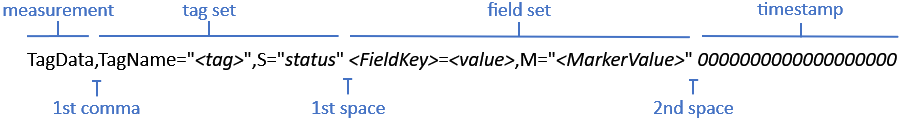 elements. TagData, Tag and Field, and Tag and Field's keys will be needed to establish the data entry in InfluxDB.For more information on the InfluxDB storage format, see InfluxDB storage format and schemas.