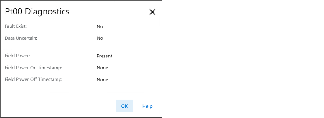 Para ver el diagnóstico de Ptxx, seleccione Diagnostics en las vistas Points o Ptxx.