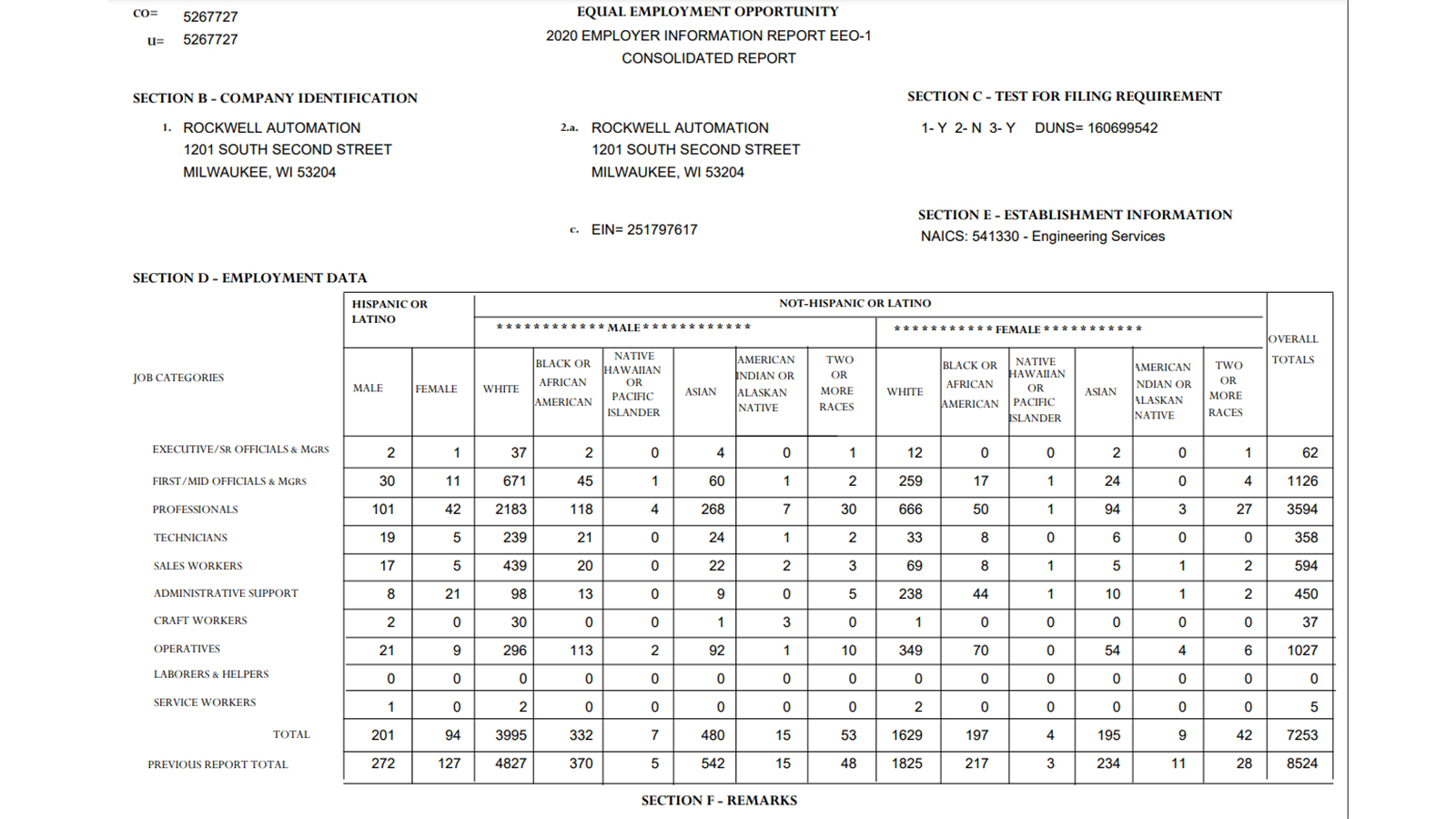 For a more detailed view of the demographics of our U.S. workforce by federal government job categories, see the EEO-1 report below. The data is from our most recent annual submission to the U.S. Equal Employment Opportunity Commission (EEOC), which reflects data as of October 2022. The EEO-1 report is filed annually and provides a demographic breakdown of the employer’s workforce by race and gender.