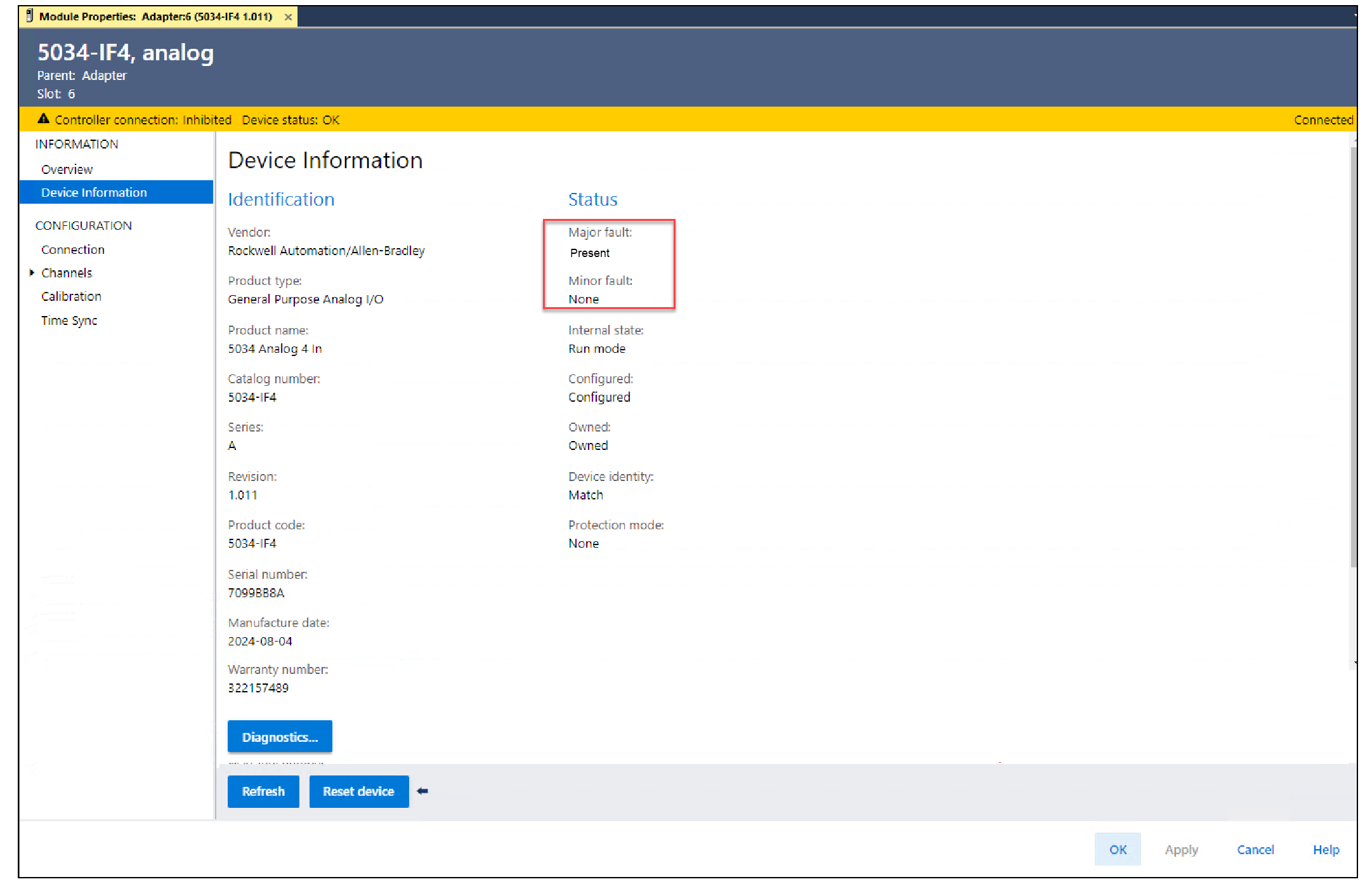 Revise el Controller Organizer para ver si hay un icono de advertencia en el módulo.