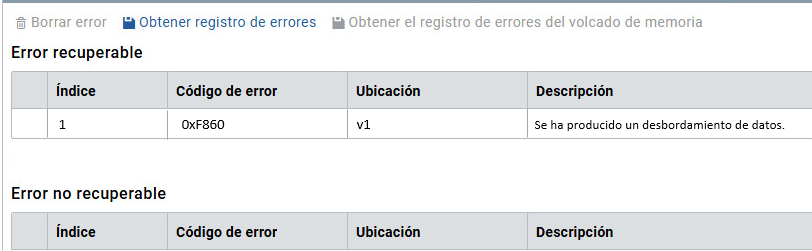 Borrar error | Elimina los errores y los registros de errores del controlador. |