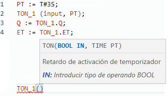 PT | Entrada | TIME | Tiempo programado máximo definido mediante el tipo de datos de tiempo. |