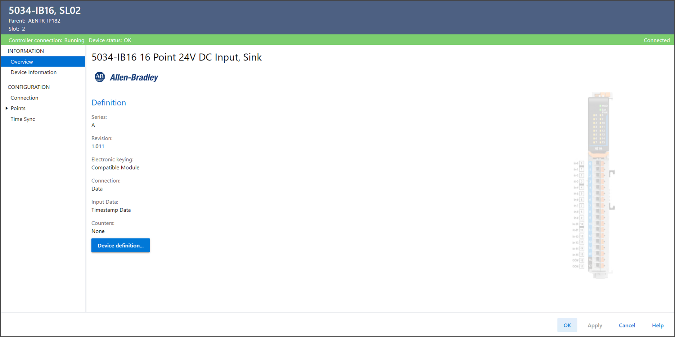 Utilice Overview para ver la definición de un dispositivo, incluido el tipo de dispositivo, la revisión, la codificación electrónica, la conexión y otros valores específicos del dispositivo.