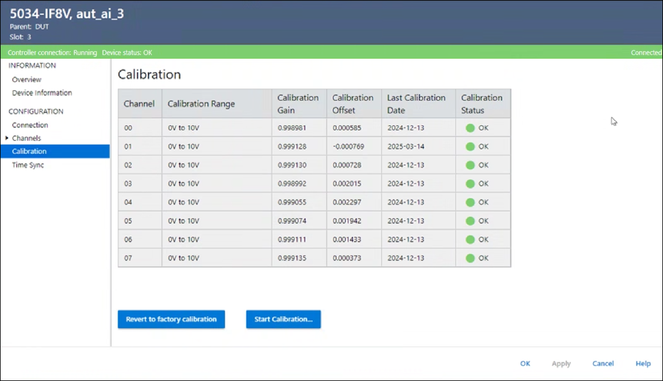 - Vérifiez que la voie devant être étalonner est configurée pour la plage d’entrée correcte.