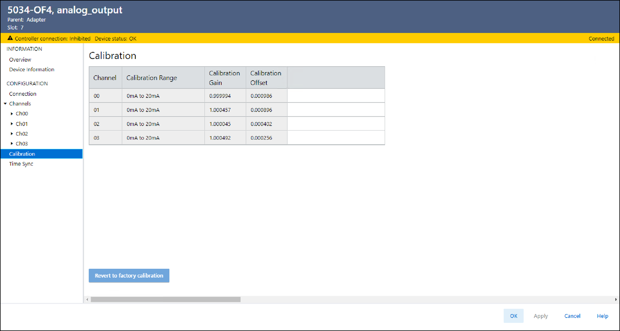 La vue Calibration (Étalonnage) fournit des informations d’étalonnage pour toutes les voies du module. Vous pouvez effectuer les actions suivantes sur cette vue pour toutes les voies :