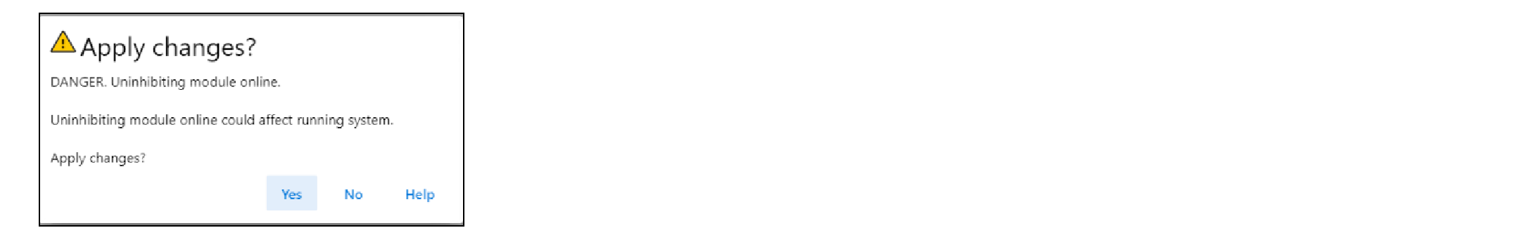 - Dans le module maître IO-Link, accédez à la fenêtre Module Properties (Propriétés du module) > vue Connection (Connexion), décochez la case Inhibit Module (Inhiber le module) et sélectionnez Apply (Appliquer).Si l’avertissement Apply changes (Appliquer les modifications) s’affiche, sélectionnez Yes (Oui).