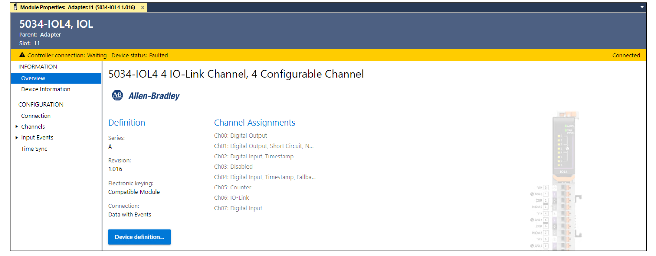Si une icône d’avertissement est présente, ouvrez la fenêtre Module Properties (Propriétés du module) et vérifiez la barre d’état pour identifier le type de défaut.