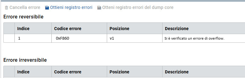 Cancella errore | Elimina l'errore e i registri errori dal controllore. |