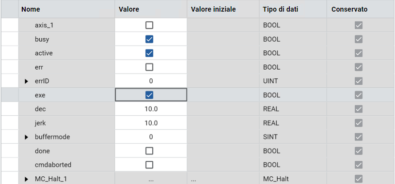 L'istruzione MC_Halt comanda un arresto controllato del movimento in condizioni operative normali.