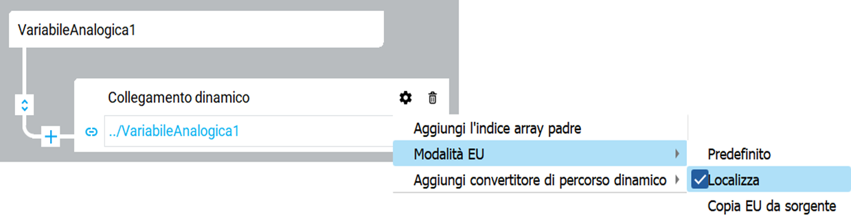 Variabile analogica. - Creare un collegamento dinamico avanzato tra la proprietàVariabileAnalogica1e la variabileVariabileAnalogica1effettiva utilizzando .