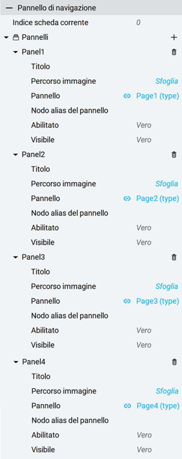 Proprietà del pannello di navigazione: Pannelli (schede)