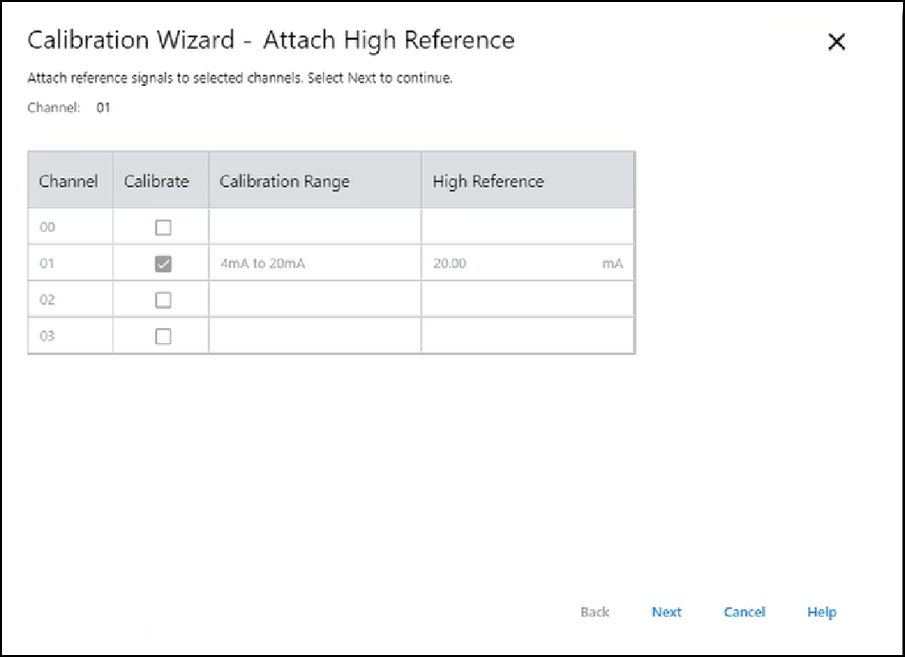 - Quando viene visualizzata la finestra di dialogo Attach High Reference, impostare il calibratore sul riferimento alto e applicarlo al canale.