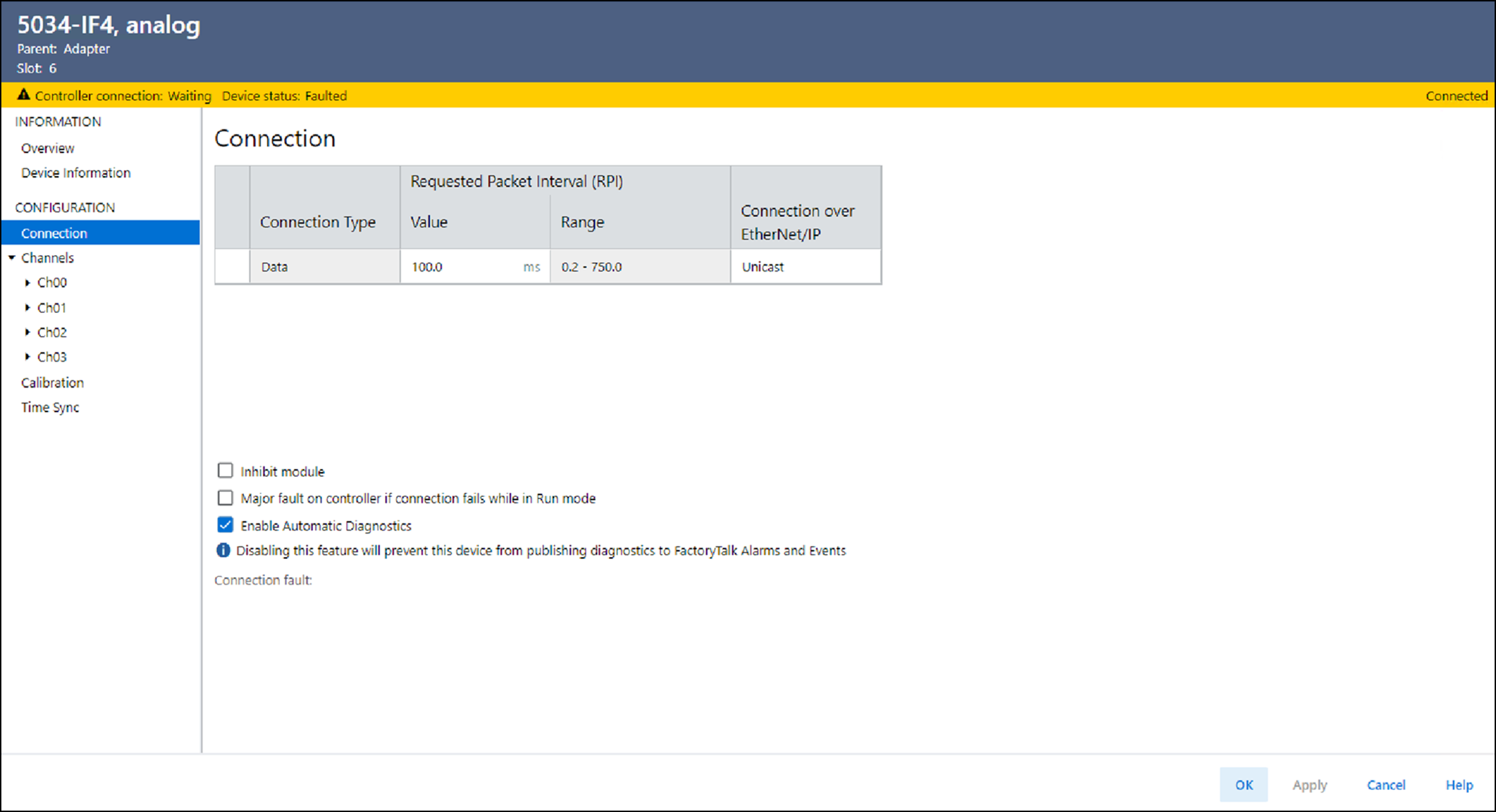- Abilitare o disabilitare la diagnostica automatica.ATTENZIONE: Se non si abilita la diagnostica automatica, il dispositivo non comunica la diagnostica a FactoryTalk Alarms and Events.