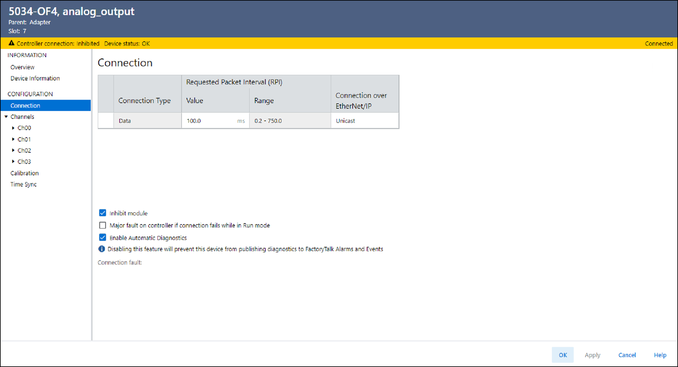 - Abilitare o disabilitare la diagnostica automatica.ATTENZIONE: Se non si abilita la diagnostica automatica, il dispositivo non comunica la diagnostica a FactoryTalk Alarms and Events.