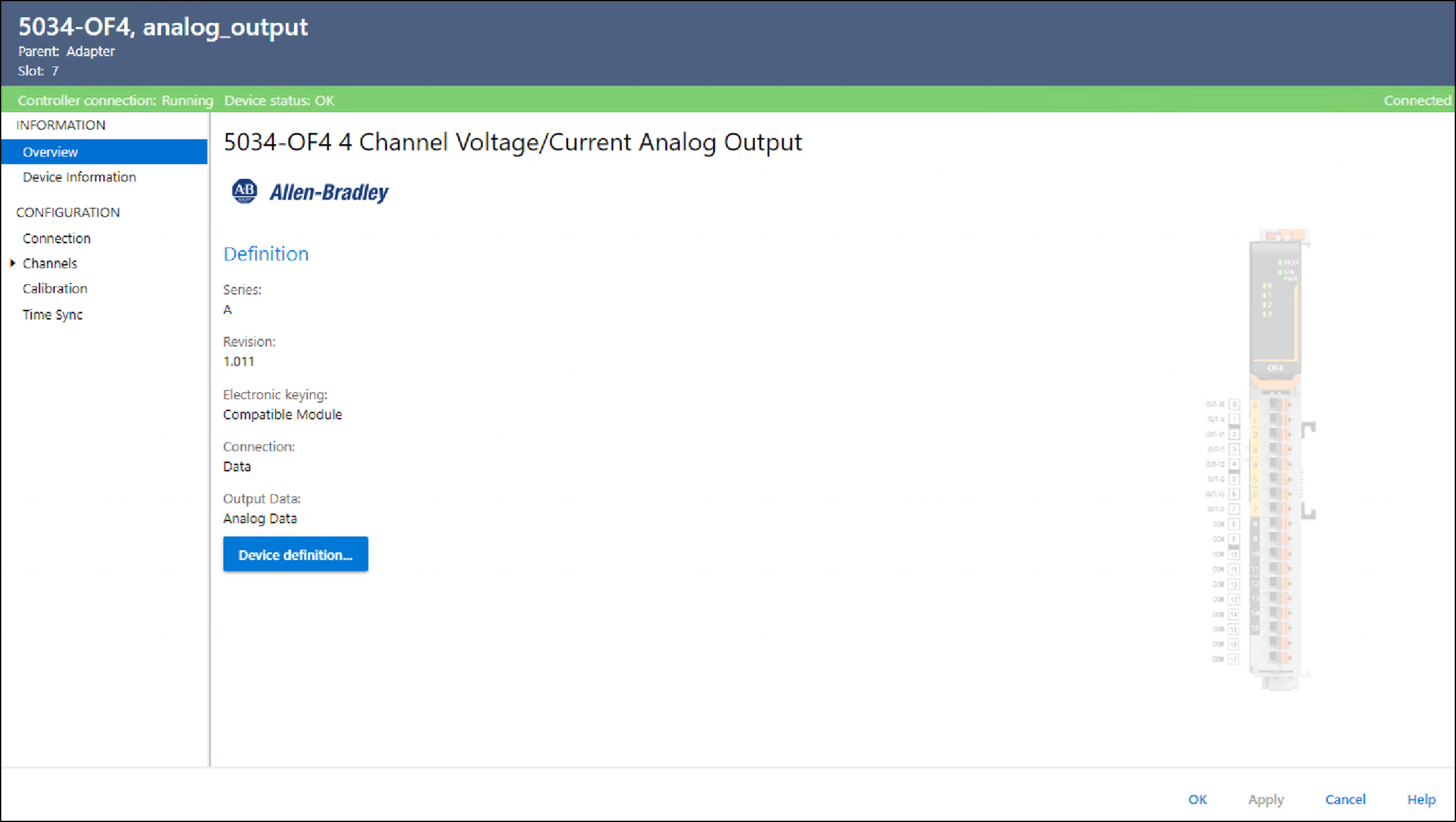 Utilizzare Overview per visualizzare la definizione di un dispositivo, inclusi tipo di dispositivo, versione, codifica elettronica, connessione e altri valori specifici del dispositivo.
