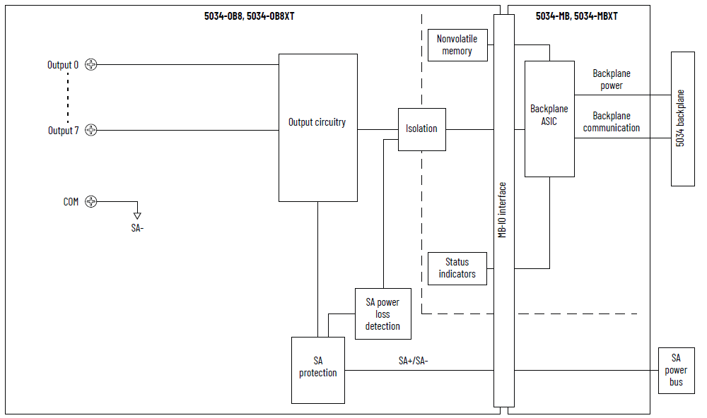 Schema a blocchi funzione di 5034-OB8 e 5034-OB8XT